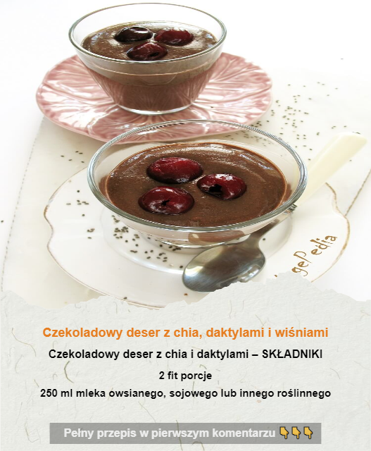 Pyszny, zdrowy i dziecinnie prosty w wykonaniu (wystarczy tylko zblendować składniki) czekoladowy deser z chia w wersji wegańskiej, czyli bez mleka krowiego, ale za to ze smaczniejszym według mnie mlekiem owsianym. Krem bez cukru – posłodzony został daktylami, które dodatkowo go zagęszczają.