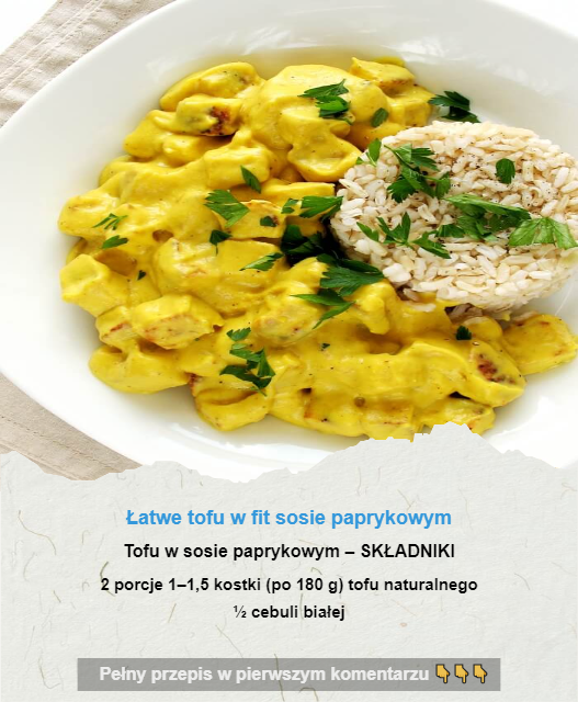 Delikatne tofu w lekkim, kremowym sosie paprykowym. Naprawdę smaczne, dietetyczne i wegańskie danie do zrobienia w ok. 25 minut. Poziom trudności: łatwizna!
