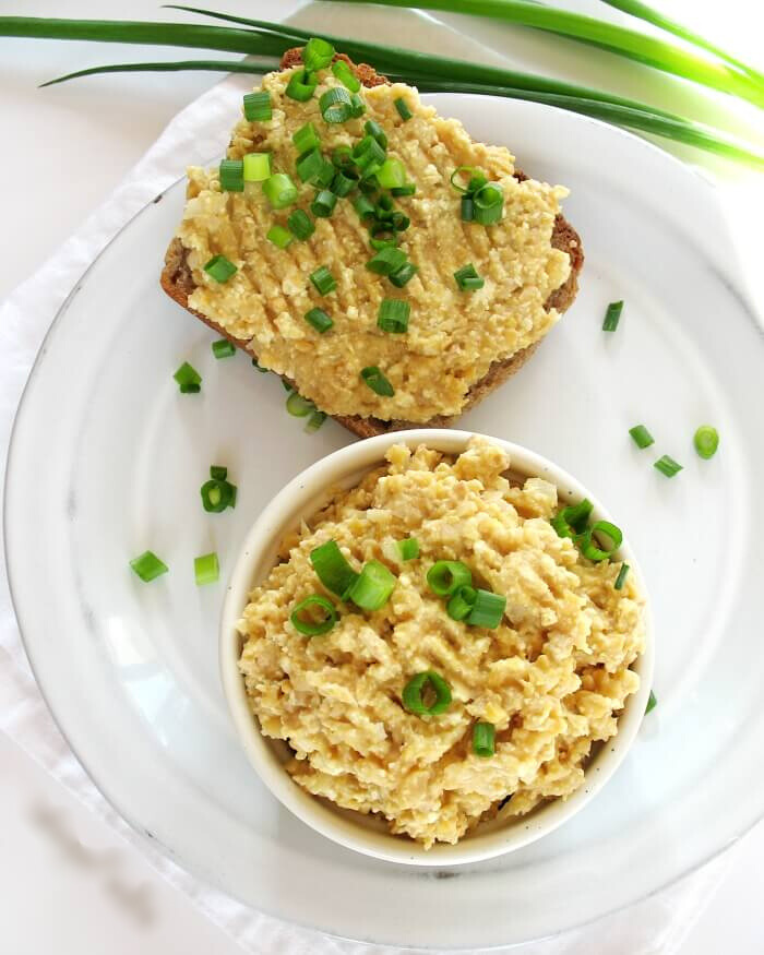 Pastę można potraktować również jako wegańską sałatkę jajeczną. Najlepiej wtedy wymieszać masę z posiekanym szczypiorem i natką pietruszki oraz ewentualnie dodać domowy, roślinny majonez – fit sojonez.