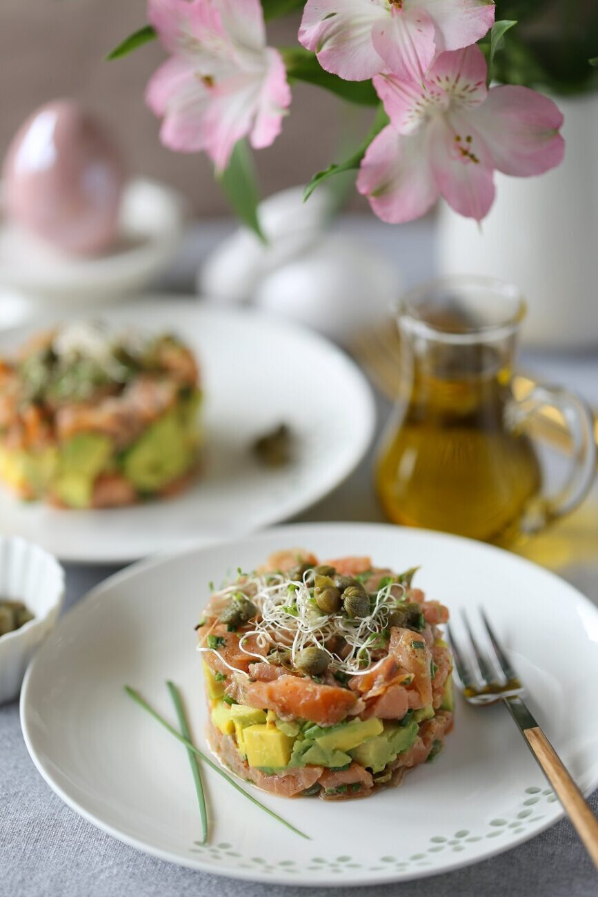 Dzisiaj przepis na małą przystawkę z wędzonego łososia i awokado. Uwielbiam zarówno awokado jak i łososia, dla mnie jest to połączenie idealne. Do tego kapary, dobra musztarda, koperek i mamy pyszne danie. Tę danie możecie podać na wielkanocny stół, niedzielne śniadanie lub imprezę. Do jej przygotowania przydadzą Wam się małe relingi, warto je mieć w domu bo bywają przydatne.